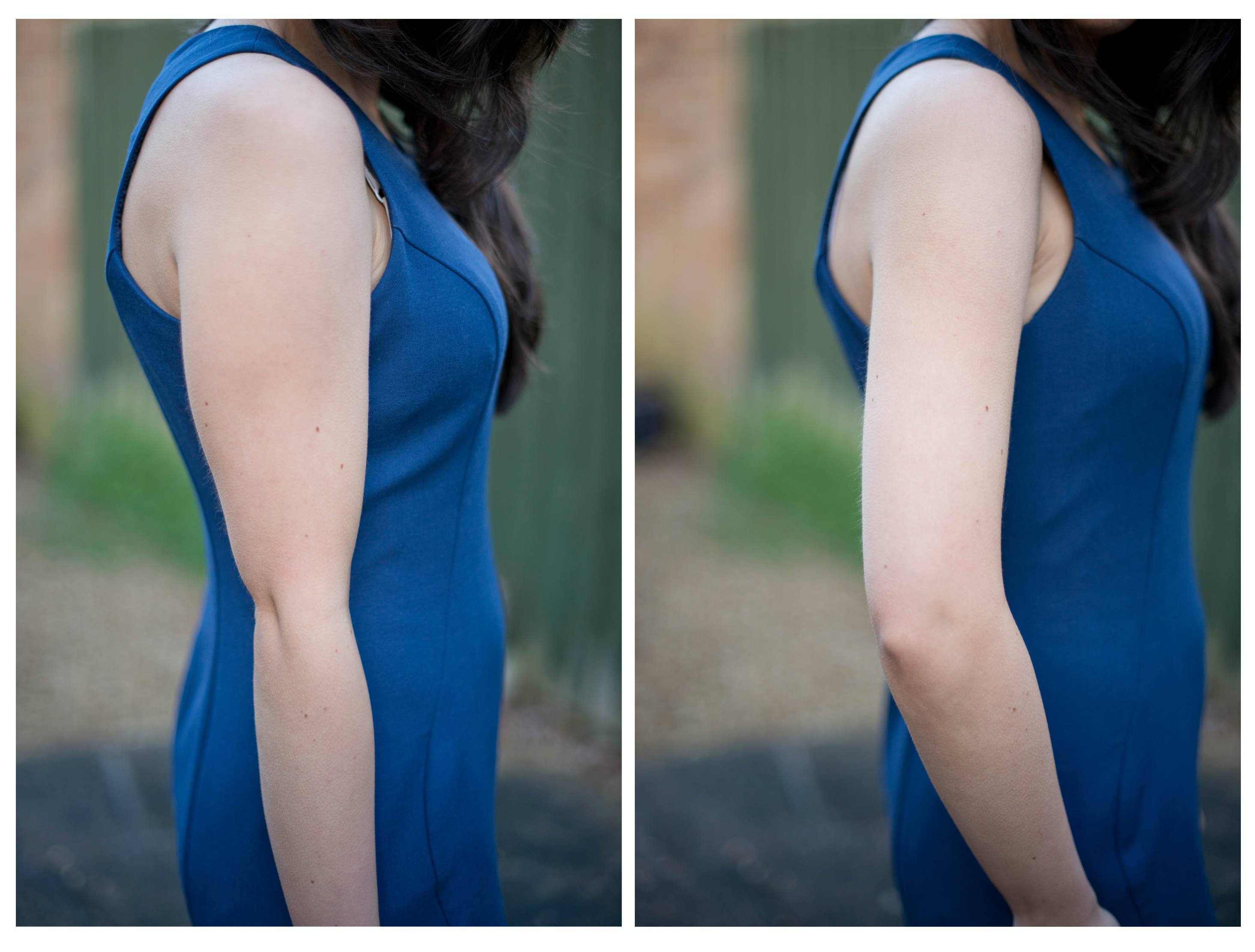 + Never hold your arm close to your body. Doing this squishes your arm to your body making it appear larger than it actually is. (See photo)