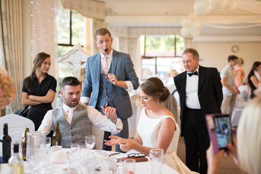 After the ceremony, we arrived at Kings Norton and took photographs in the beautiful grounds. Whilst we were taking photographs, the fabulous Christian Fletcher magician entertained guests!