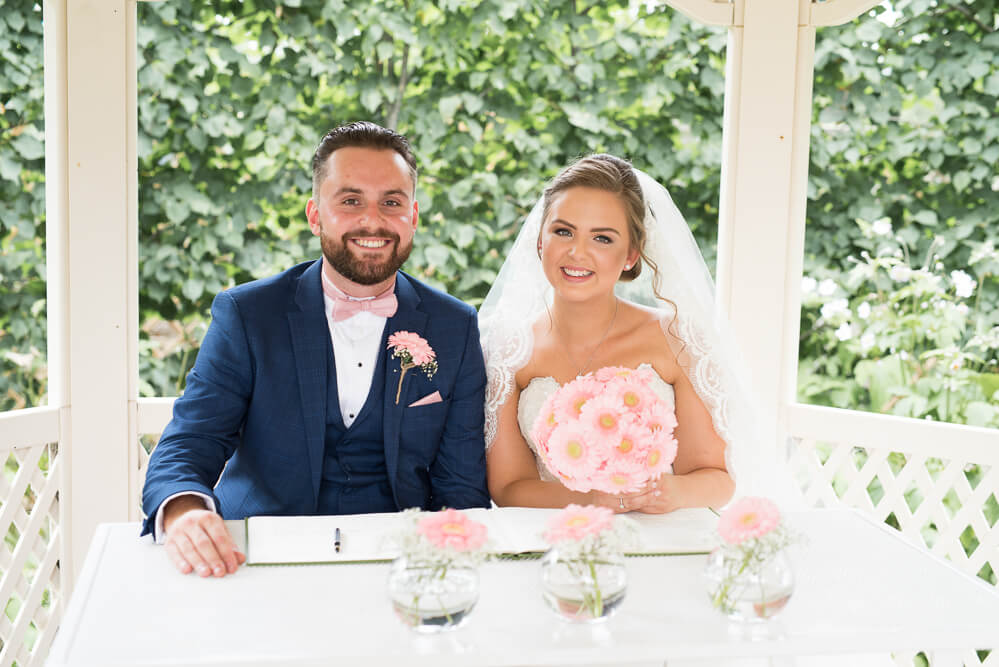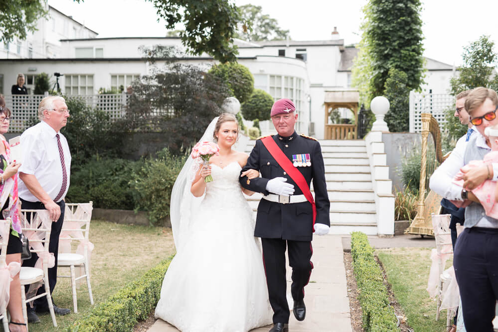 The ceremony was outdoors, I love the outside ceremony area at Warwick House in the summer.. although this was was very hot! After the ceremony we took photographs in the grounds and then it was inside for air conditioning! Haha.