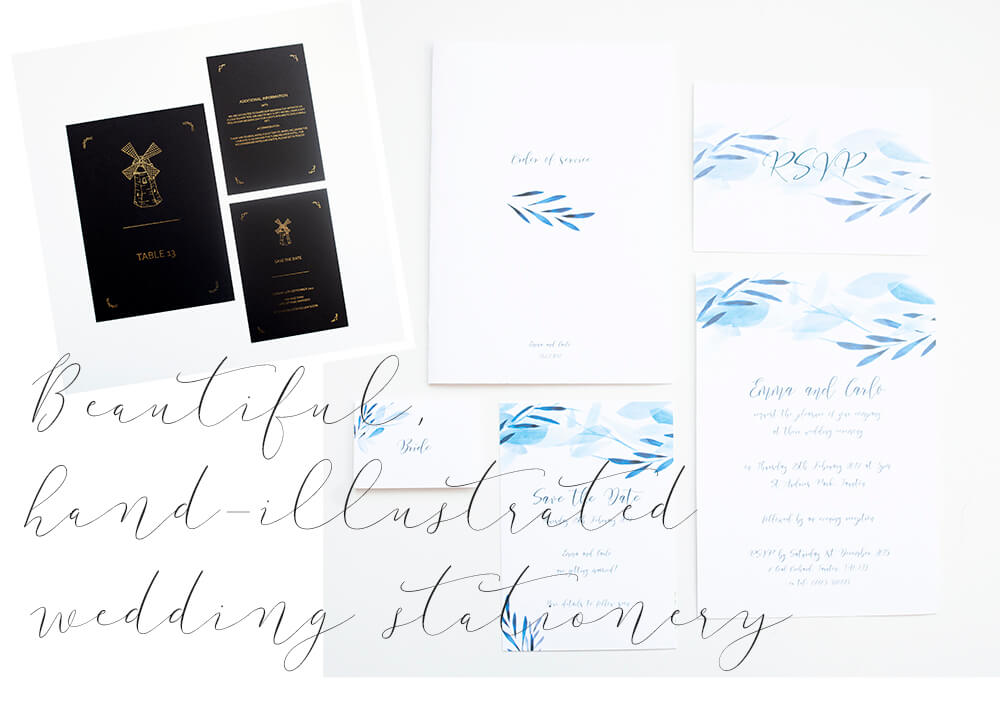 Ochre weddings provide bespoke, hand illustrated designs perfect for your wedding day. There are so many collections to choose from and also the opportunity to have your own personal designs.