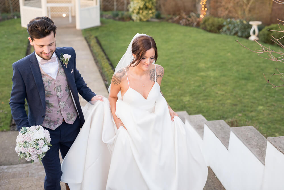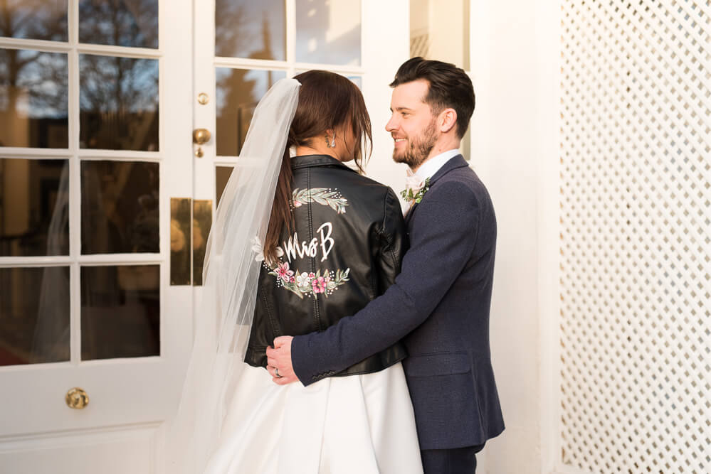 After the beautiful ceremony we we’re able to go outside for photographs! We we’re very lucky to have some gorgeous sunshine in February. Ria also had a leather jacket made which looked great – love this idea!