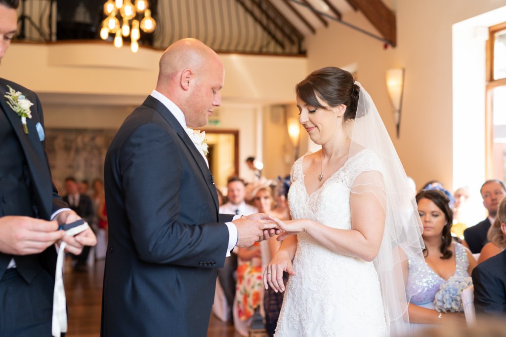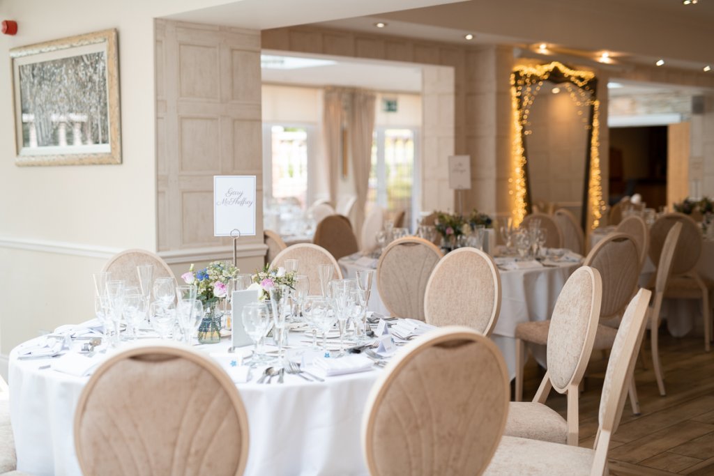 After the ceremony, the wedding breakfast and speeches began in a very Coventry City themed wedding room! Once finished, the evening reception began and everyone danced the night away!