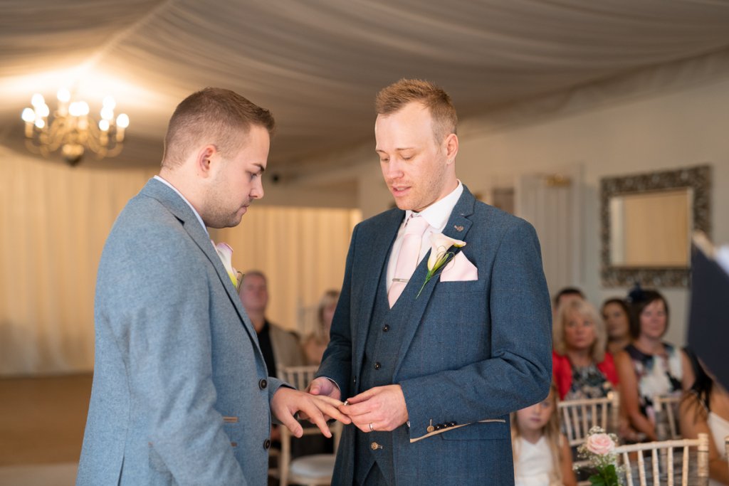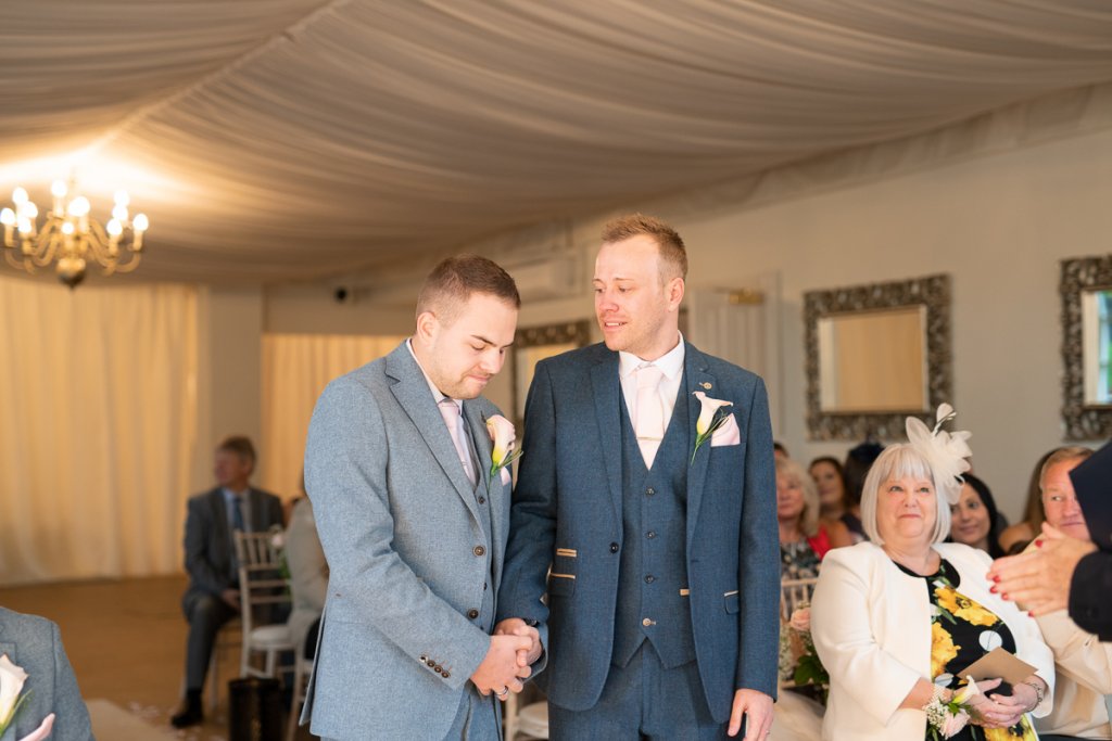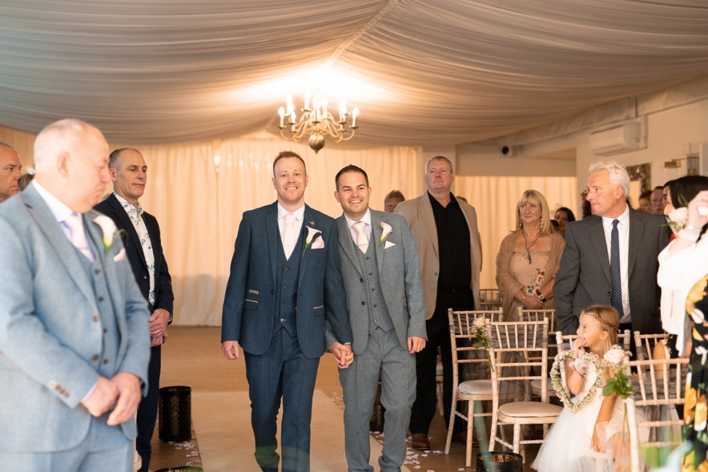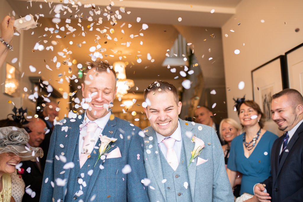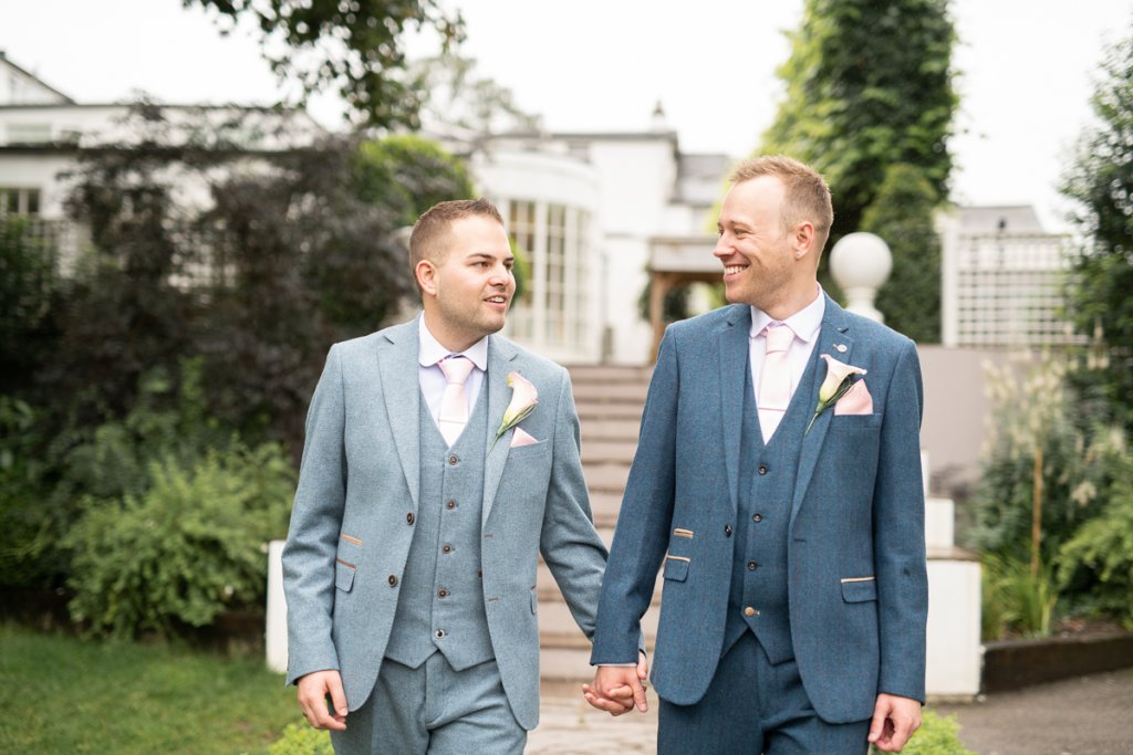 Adam and Connor got married at the beautiful Warwick House on a very rainy day! Adam got ready at Warwick House, then Connor joined before the ceremony, the both wore suit’s from Albie and Lonnie’s and shoes from John Whites!