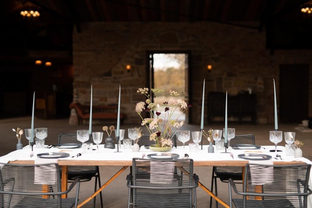 Working on the shoot was stylist We Are the Bazeley’s, who styled the set. Using earthy tones with the dark backdrop of the barn looked ace. Talented florist Emily Robbins made some stunning flower centrepieces and used on trend pampas grass to make it look amazing.