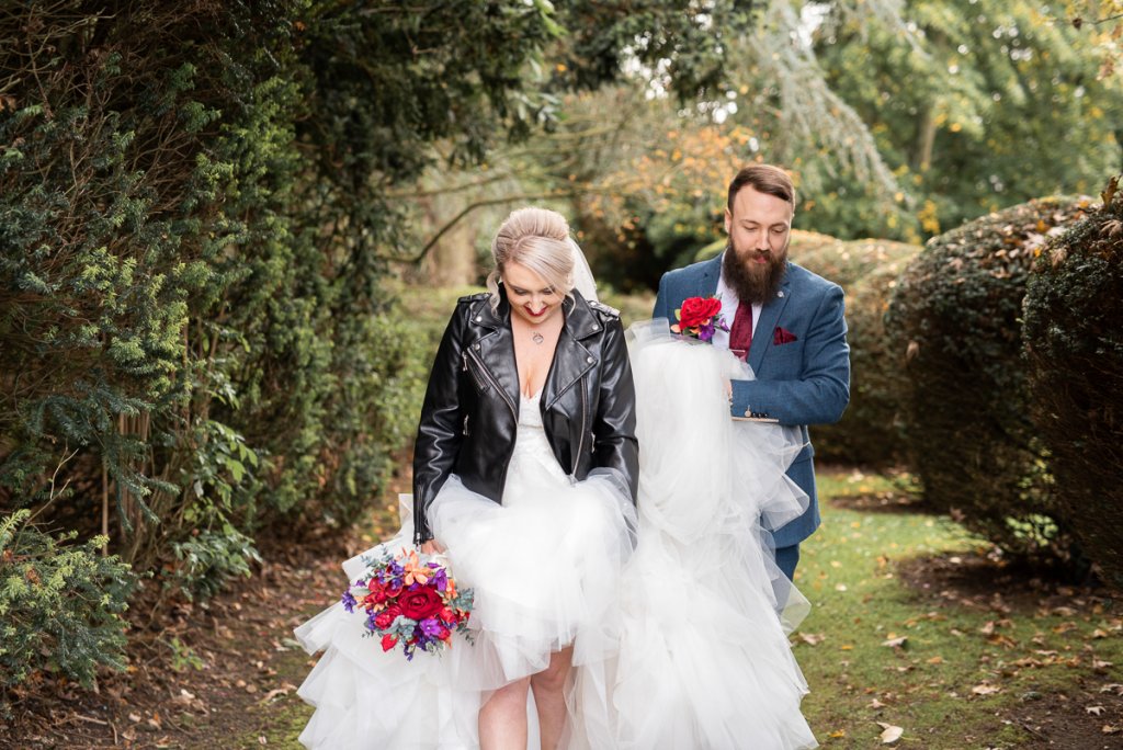 Kayleigh and Anthony got married in a Church with their reception at Ansty Hall. The church service was lovely, and even though it rained a little afterwards we still took some photographs outside. Kayleigh’s Dad had painted a leather jacket for her to wear, which went great with the feel of the day. Love the photographs of it outside!