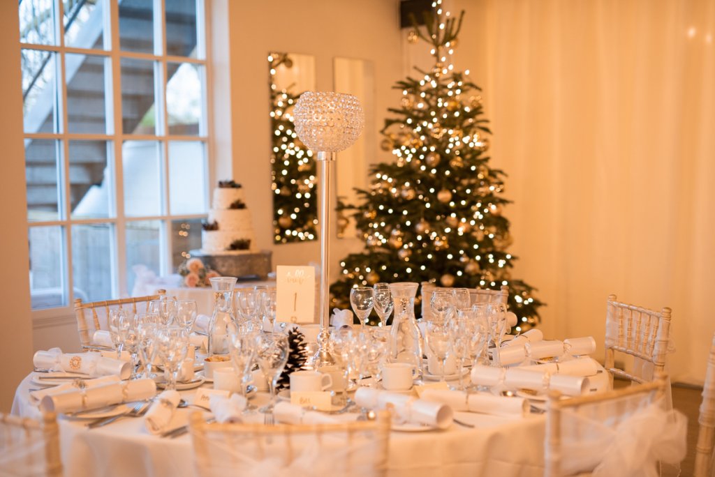 Their wedding breakfast room looked stunning. With a gorgeous cake by The Cakery, with Christmas lights sparkling in the back ground.